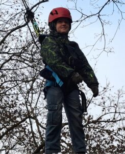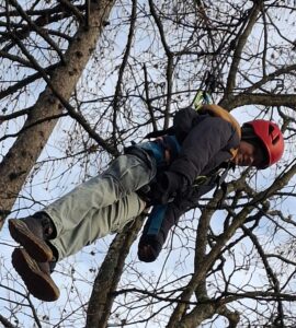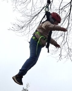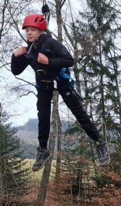 Am Donnerstagvormittag ging es um „fliegende Eichhörnchen”: Am Seilzug durch die Klasse gesichertes 12m hohes Aufsteigen im Wald. Hier machte sich die Klasse hervorragend, arbeitete gut zusammen, es trauten sich einige am Ende, die am Anfang noch zu viel Angst hatten. Übrigens haben wir, die Anleiter, als auch ich, niemanden gezwungen, wenn er oder sie es sich doch nicht zutraute.