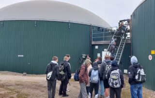 Am 26.03. führten die 9. Klassen im Rahmen des Wochenplans Erneuerbare Energien eine Exkursion in die nahegelegene Biogasanlage nach Goldbach durch. Neben dem Aufbau und der Funktionsweise einer Biogasanlage erhielten wir auch einen Einblick in die dort ansässige Milchproduktion. Besonderes Interesse fanden wir an der „Kinderstube.
