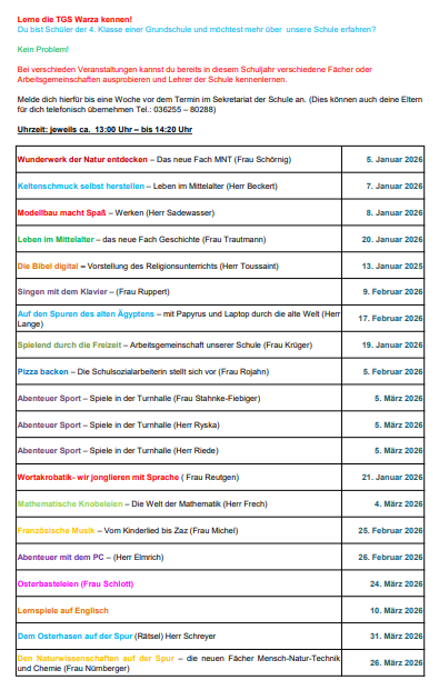 Ihr Kind soll im kommenden Schuljahr (2026/2027) die Staatliche Gemeinschaftsschule Warza besuchen – Dann sind Sie hier richtig! Wir freuen uns auf Ihr Kind.