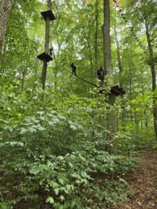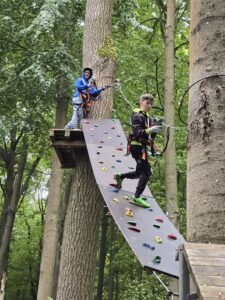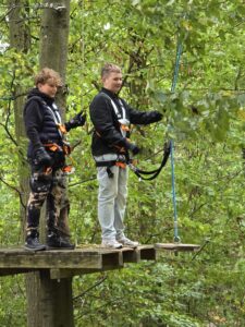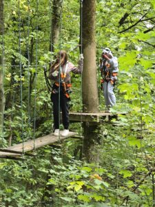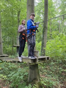 Am 24. September machten sich die achten Klassen unserer Schule bei windigem und kühlen Herbstwetter auf den Weg zum Kletterpark Hainich in Kammerforst. Ob auf wackelnden Seilbrücken, rasanten Seilrutschen oder beim Überqueren schmaler Balken – Mut, Geschicklichkeit und Teamgeist waren gefragt. Am Anfang hatte einige ganz schön Respekt vor der Höhe, aber danach verflog die Zeit und manch einer gar nicht mehr runter. Das Klettern in den unterschiedlichen Parcours hat gezeigt, dass wir uns gegenseitig richtig gut unterstützen können und problematische Situationen gemeinsam meistern. Der Tag im Hainich war für alle ein besonderes Erlebnis, das die Klassengemeinschaft stärkte und sicher noch lange in Erinnerung bleibt.